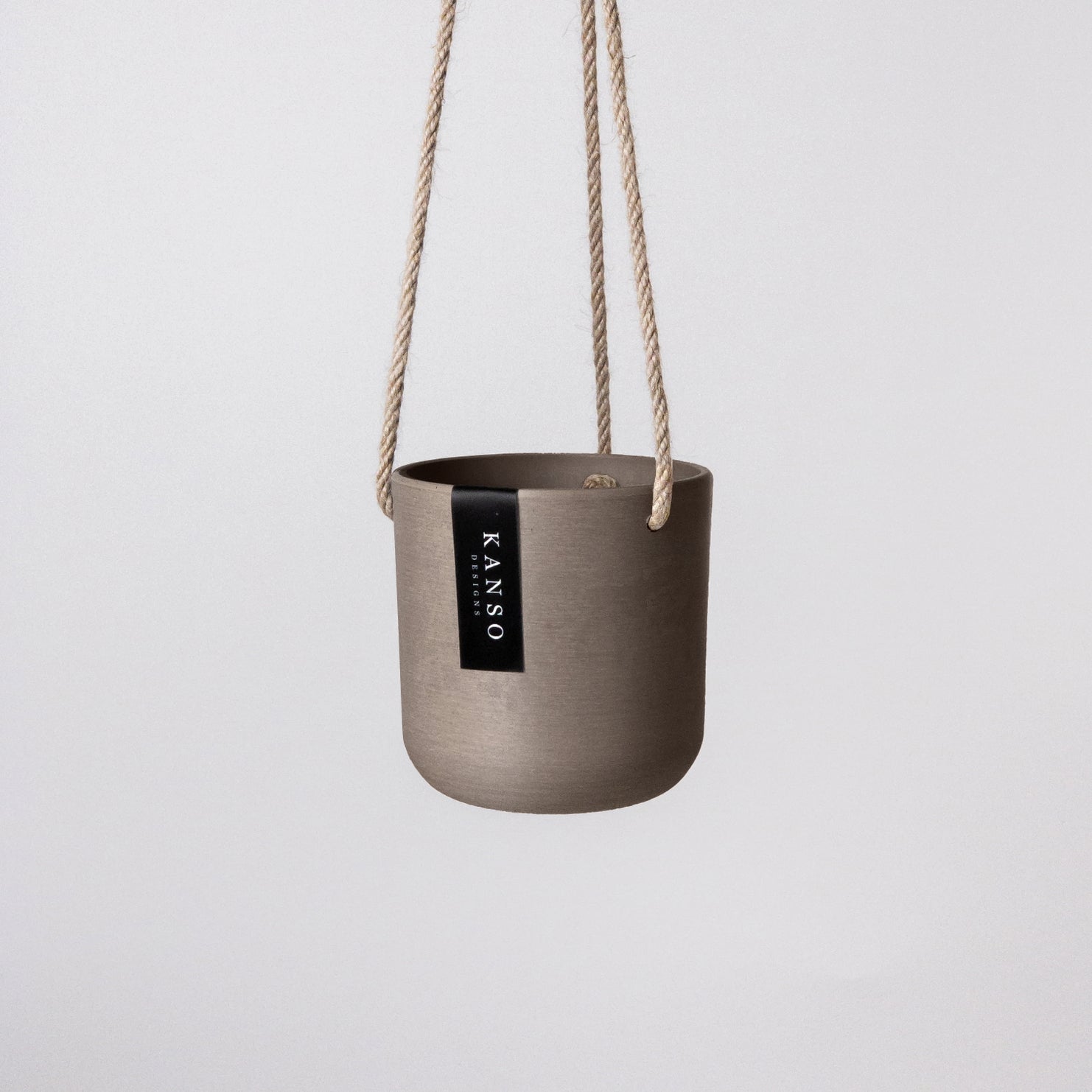 This small hanging planter is ideal for trailing plants. It has a drainage hole with an optional plug. The material of these pots is super easy to drill additional holes into if that's your thing. They are made from recycled plastic, stone dust, and wood dust.